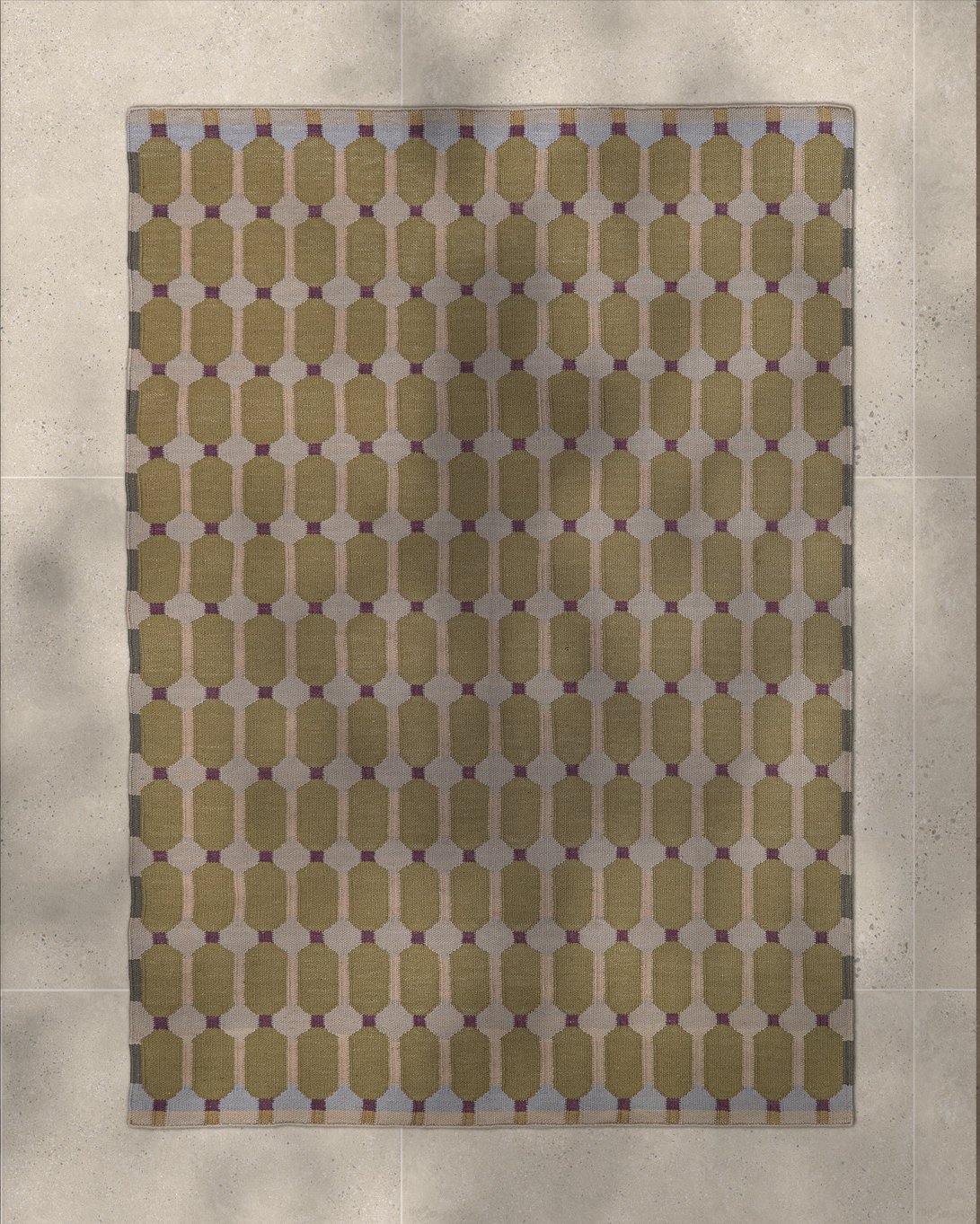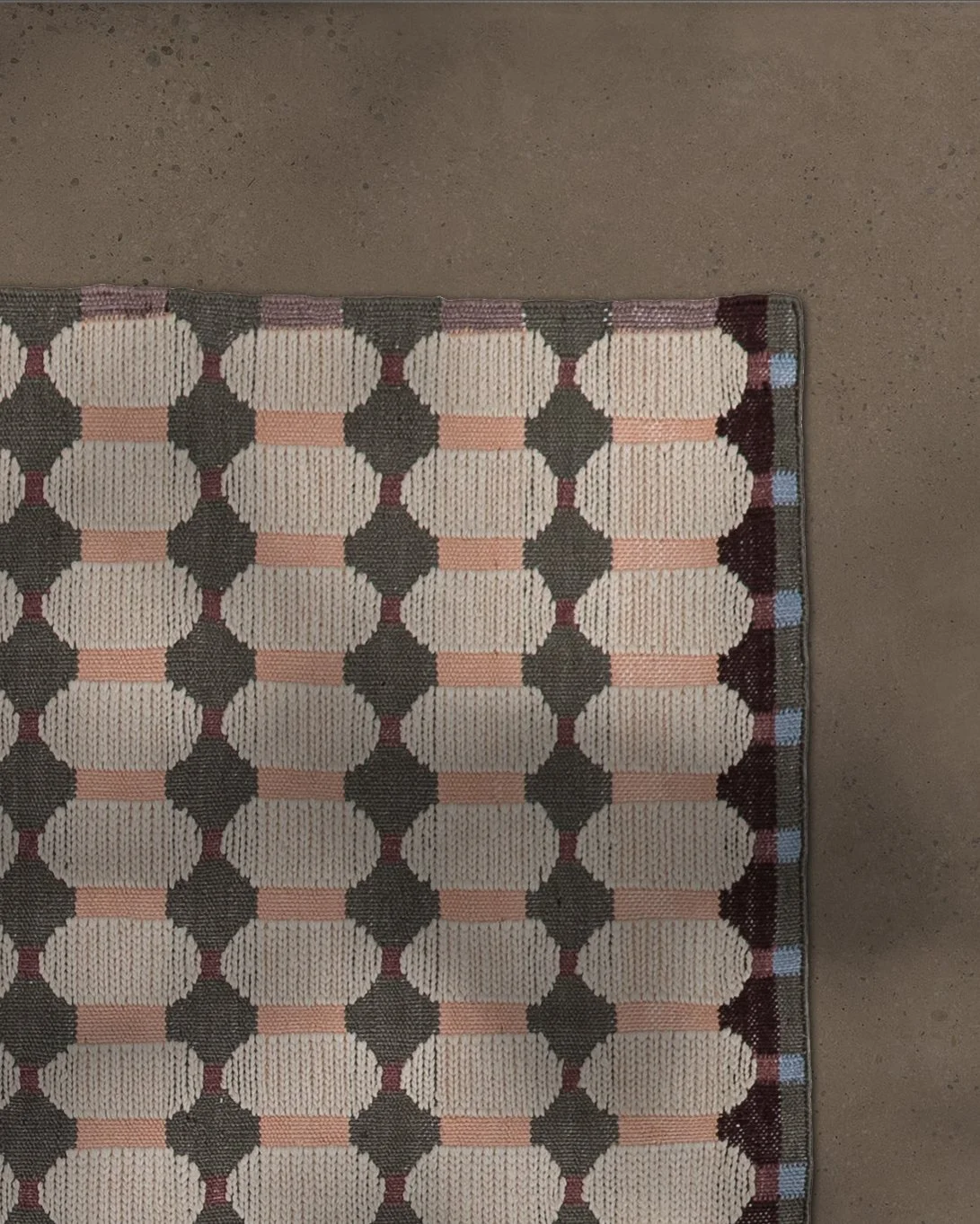 For this collection of outdoor rugs, Charlotte Lancelot continues her research centered on magnification as a visual language. The pattern originates from a schematic weaving drawing—a primitive, almost elemental warp and weft—which, once amplified, becomes structure, rhythm, and a graphic landscape. This magnifying-glass effect, recurrent in her work, reveals what usually remains invisible: the detail of the stitch, the gesture’s mark.
